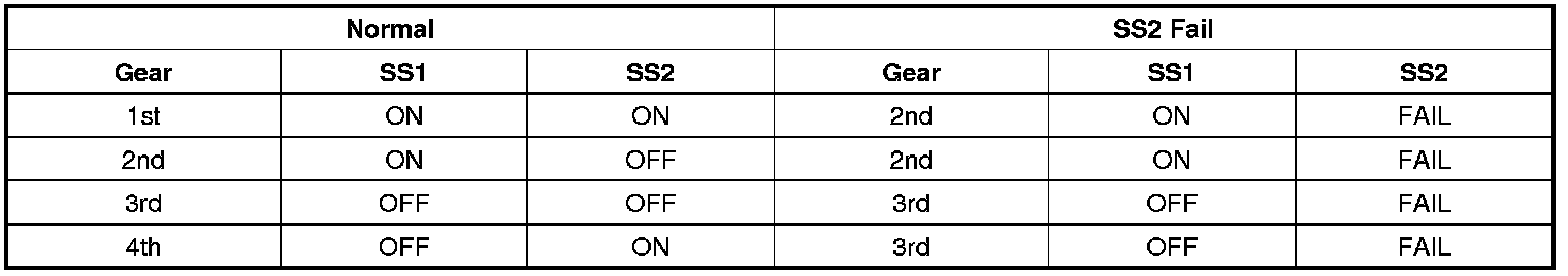 * The transmission control module (TCM) detects that the ON signal of the shift solenoid (SS) 2 monitor during 0.5 second when the SS 2 driver outputs the OFF signal. The SS 2 circuit is open or short to battery.