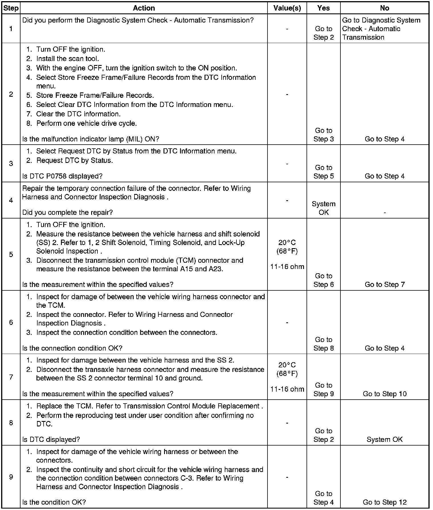 DTC P0758 2-3 Shift Solenoid (SS) Control Circuit