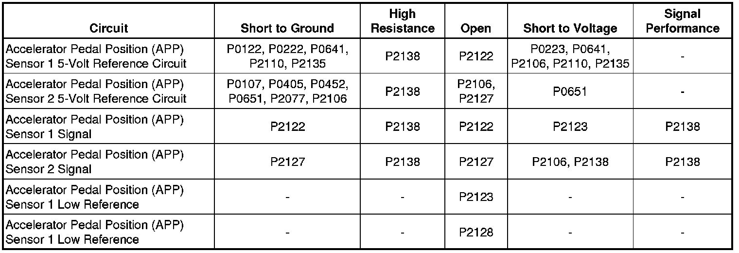 - Accelerator Pedal Position (APP) Sensor 1 Circuit High Voltage