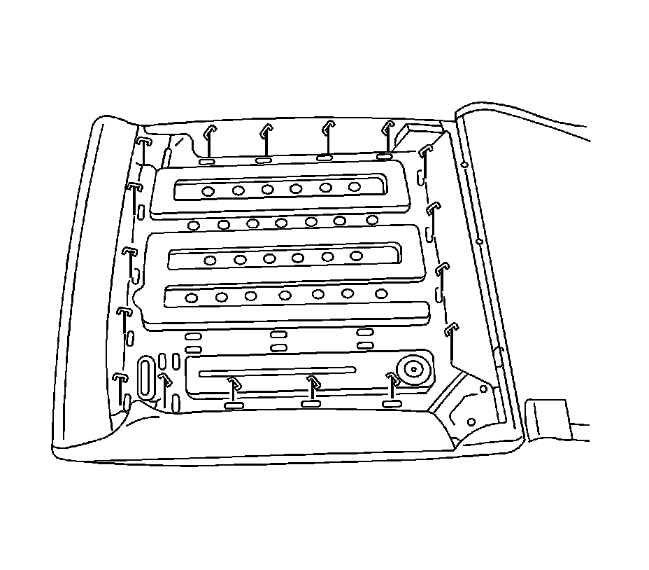 1. Remove the seat back and/or the seat cushion. Refer to Front Seat Back Replacement (Lever Type) (Front Seat Back Replacement (Lever Type))Front Seat Back Replacement (Dial Type) (Front Seat Back Replacement (Dial Type)) , Front Seat Cushion Replacement (Front Seat Cushion Replacement) , Rear Split Folding Seat Back Replacement (Rear Split Folding Seat Back Replacement) and/or Rear Seat Back Cushion Replacement (Rear Seat Back Cushion Replacement).