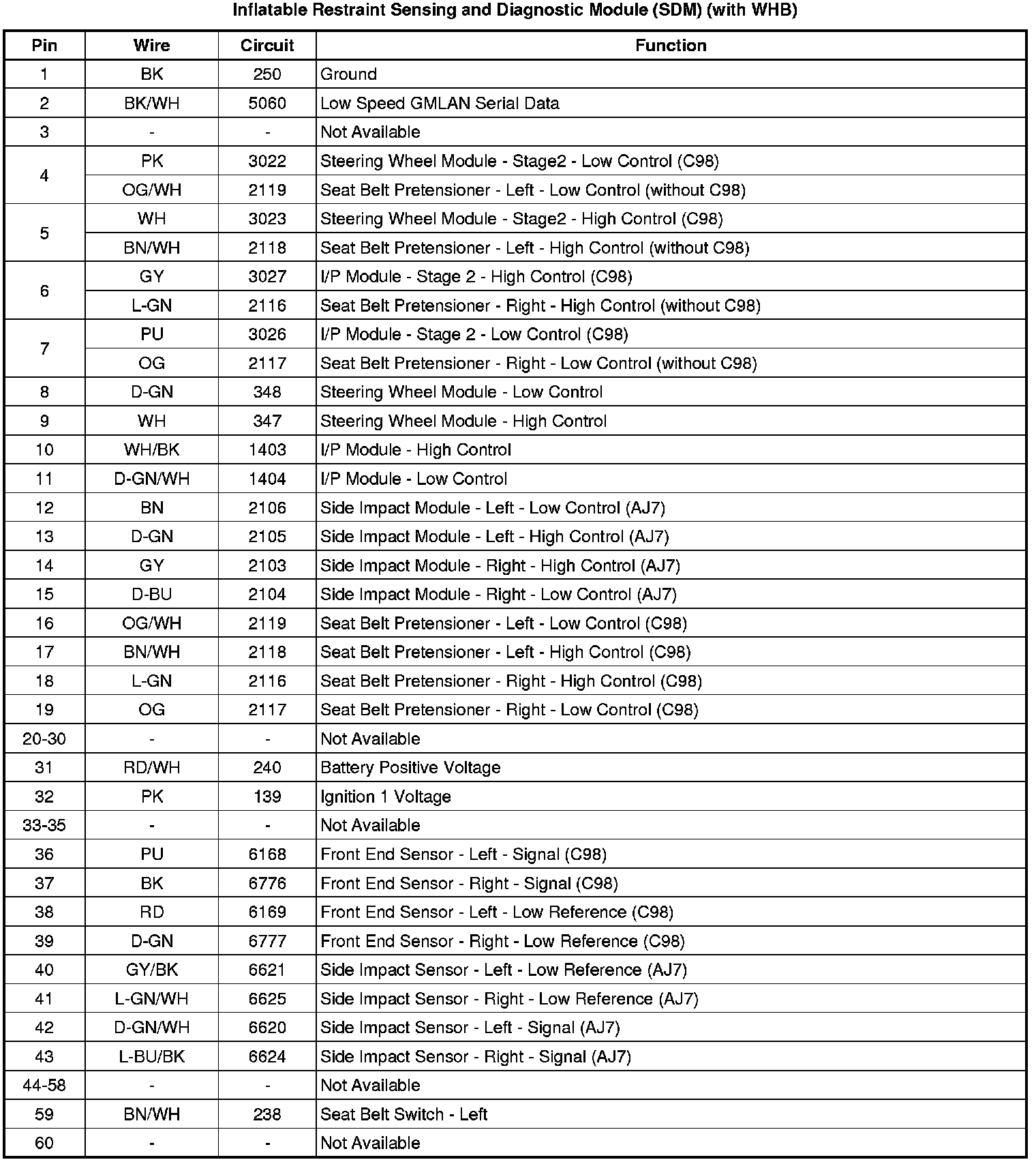 Inflatable Restraint Sensing and Diagnostic Module (SDM) (with WHB)