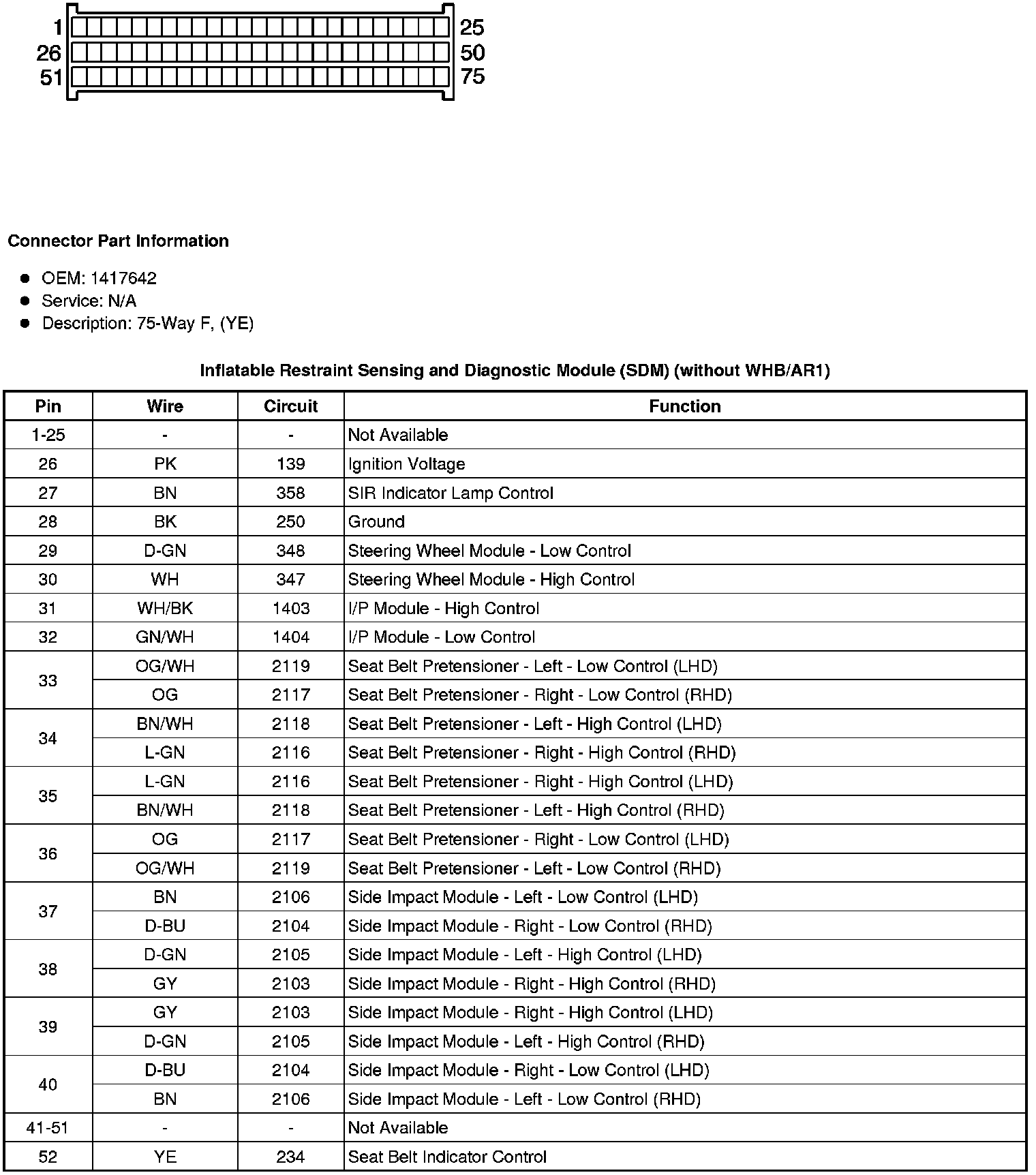 Inflatable Restraint Sensing and Diagnostic Module (SDM) (without WHB/AR1)