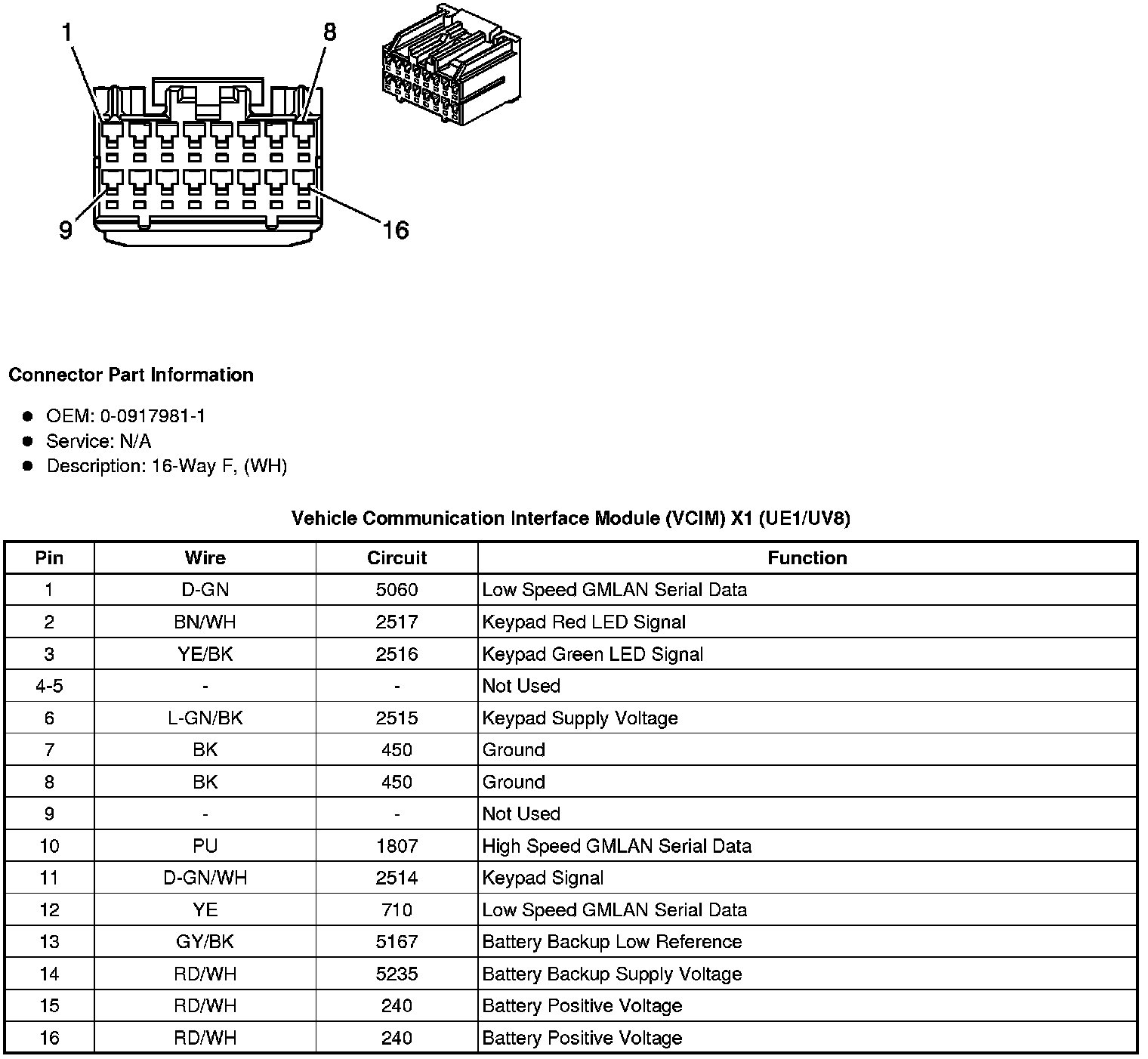 Vehicle Communication Interface Module (VCIM) X1 (UE1/UV8)