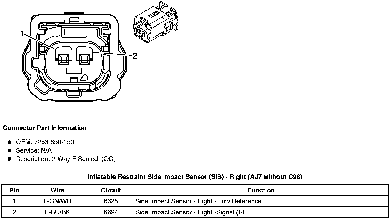 Inflatable Restraint Side Impact Sensor (SIS) - Right (AJ7 with C98)
