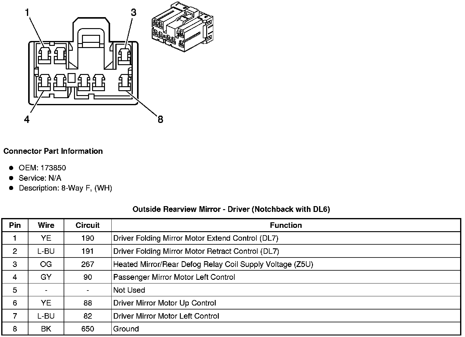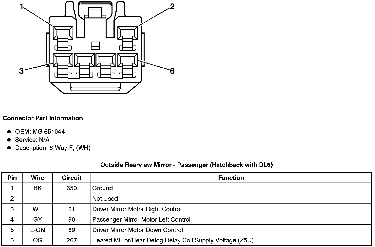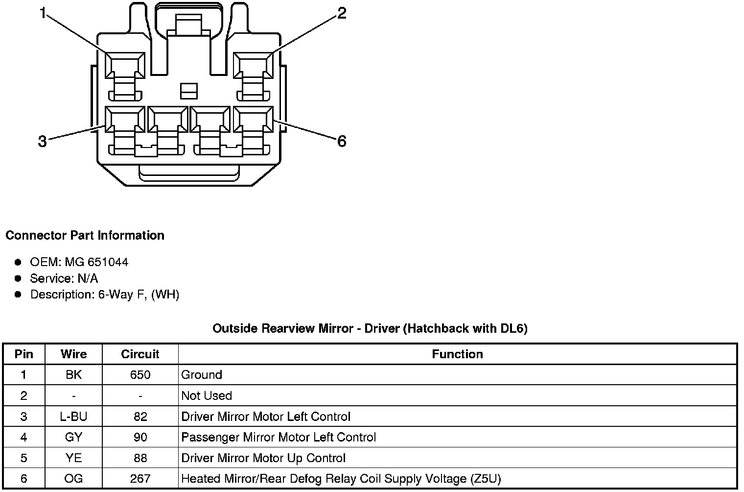 Outside Rearview Mirror - Driver (Notchback with DL6)