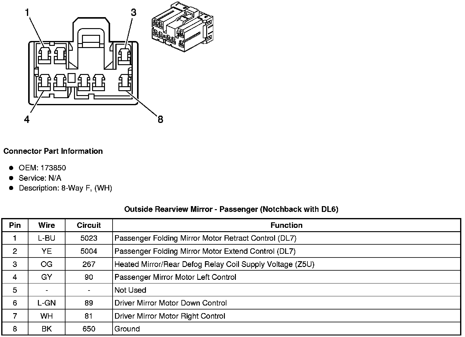 Outside Rearview Mirror - Passenger (Notchback with DL6)