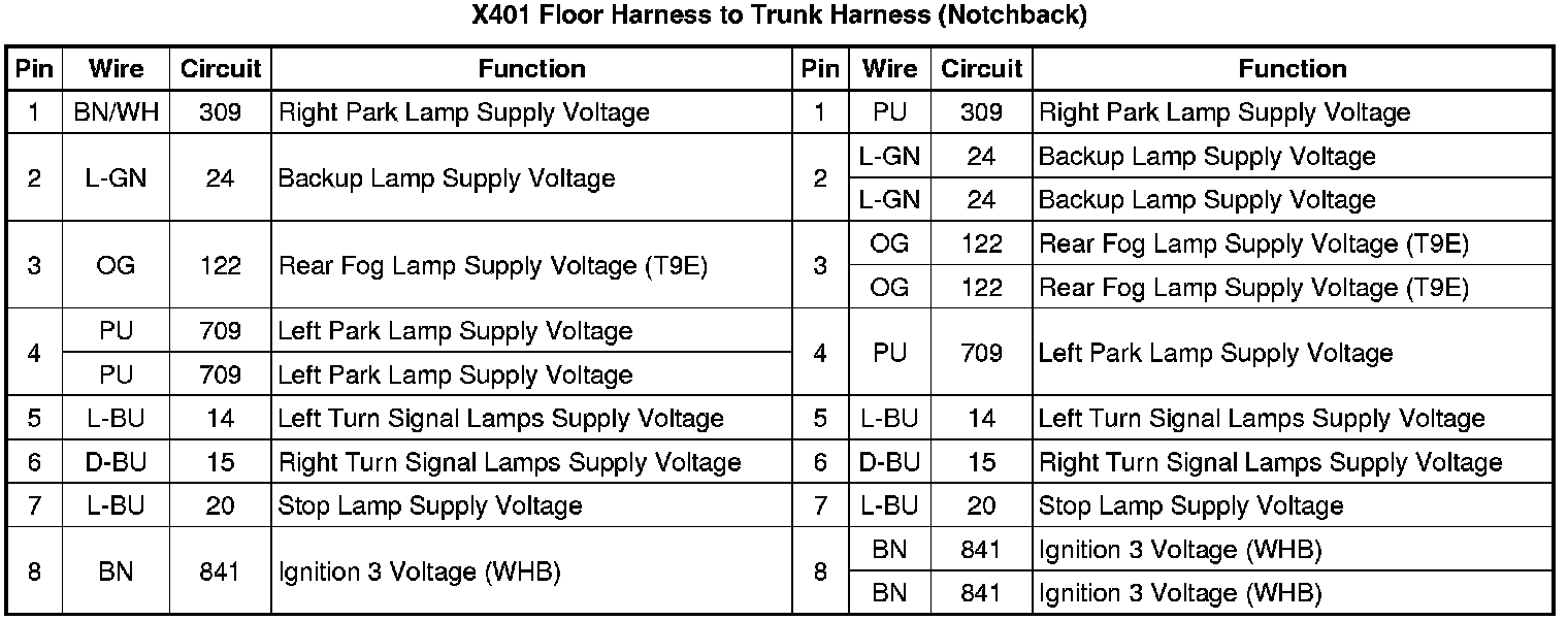 X401 Tailgate Harness to Floor Harness (Hatchback)