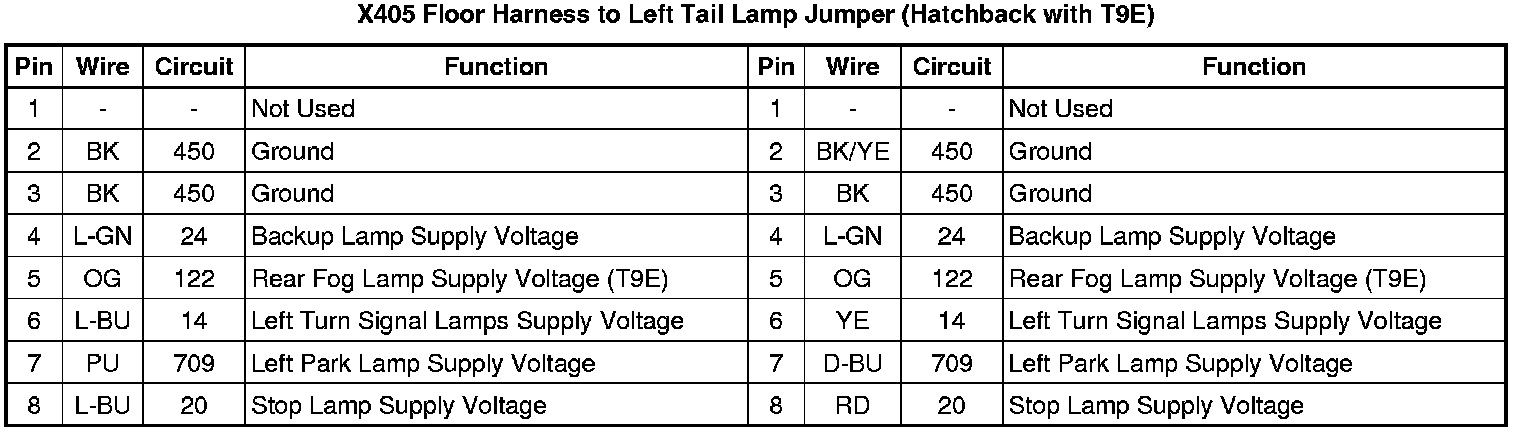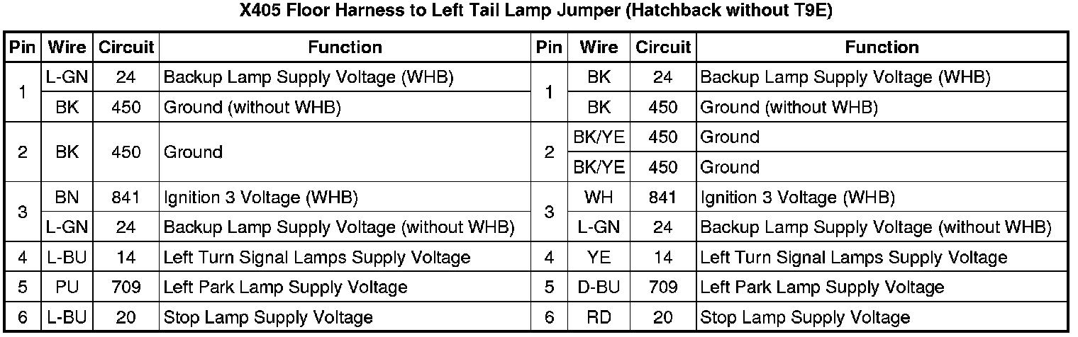 X405 Floor Harness to Left Tail Lamp Jumper (Hatchback with T9E)