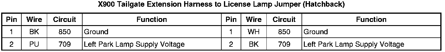 X900 Tailgate Extension Harness to License Lamp Jumper (Hatchback)