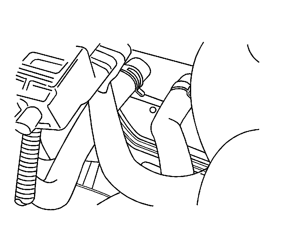 1. Install the left heater hose to the coolant inlet line fitting. Slide the end of the heater hose over the coolant fitting until the hose is seated.