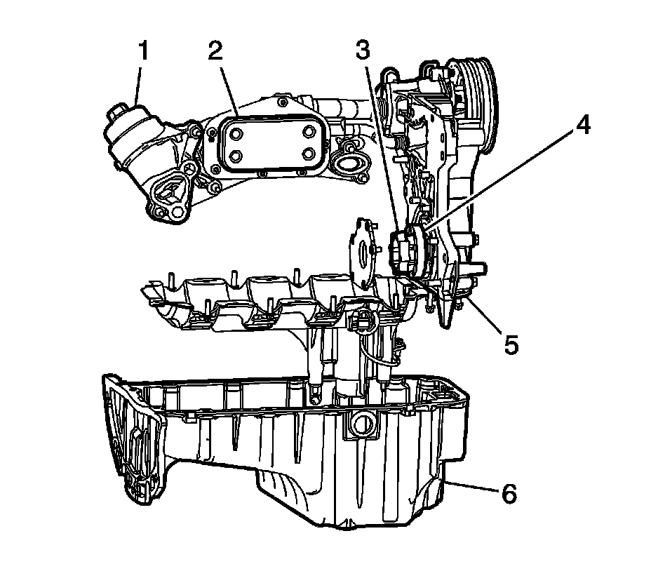 The oil pump (1) supplies engine oil from the oil pan (4) and feeds it to the various parts of the engine under pressure.