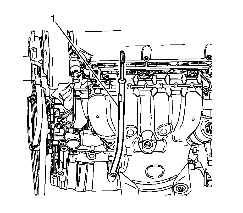 2. Remove the oil indicator and tube (1).