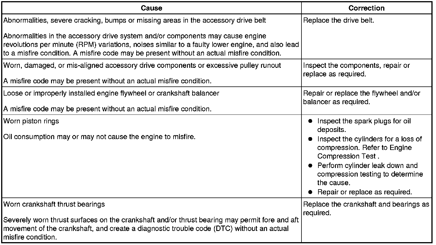 Base Engine Misfire with Abnormal Internal Lower Engine Noises
