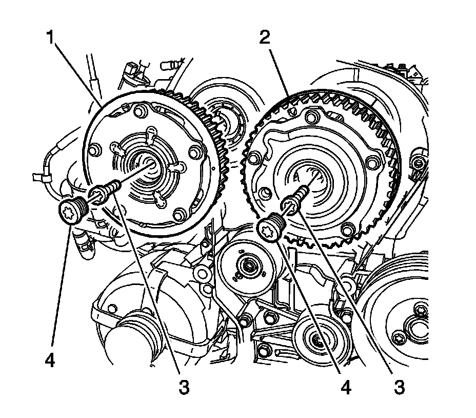 3. Remove the camshaft sprocket bolts (3).