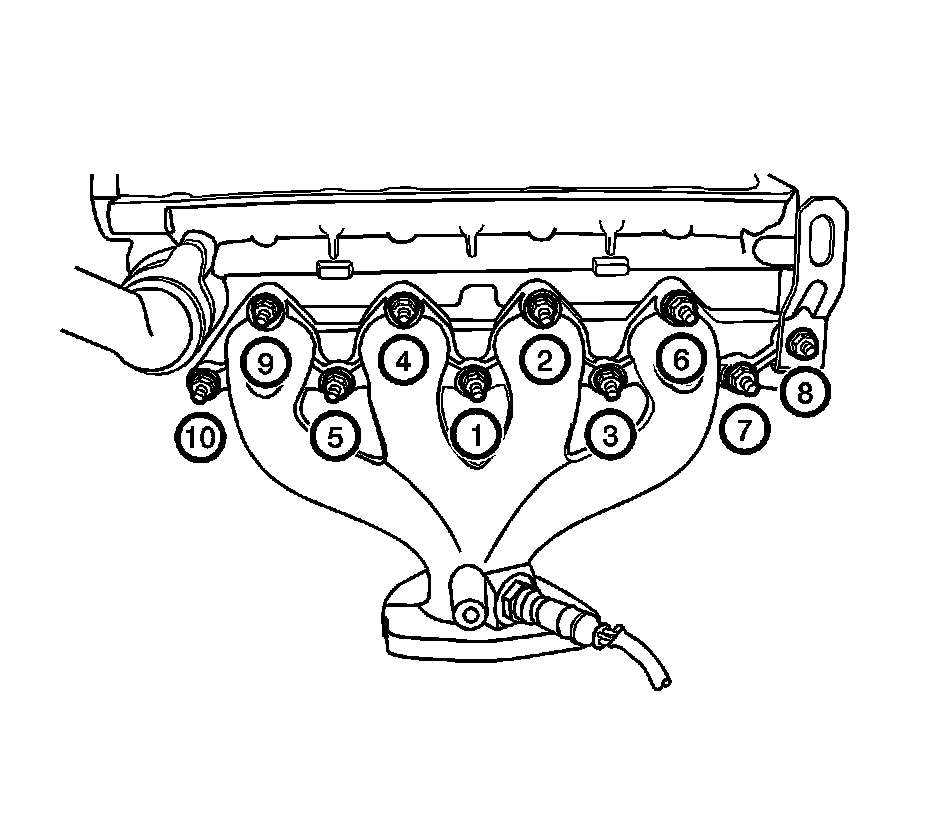 3. Install the exhaust manifold retaining nuts and tighten them in the sequence shown.
