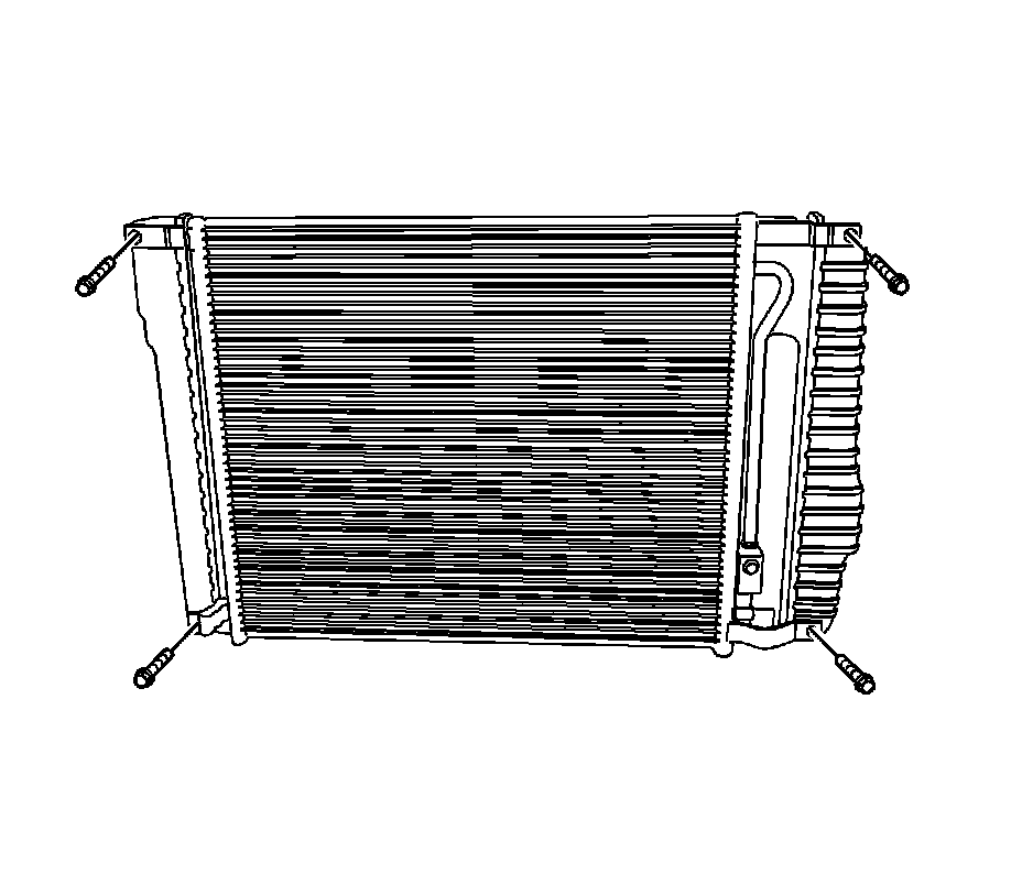 3. Install the condenser to the radiator. The lower mount shock protectors must fit into the holes provided.