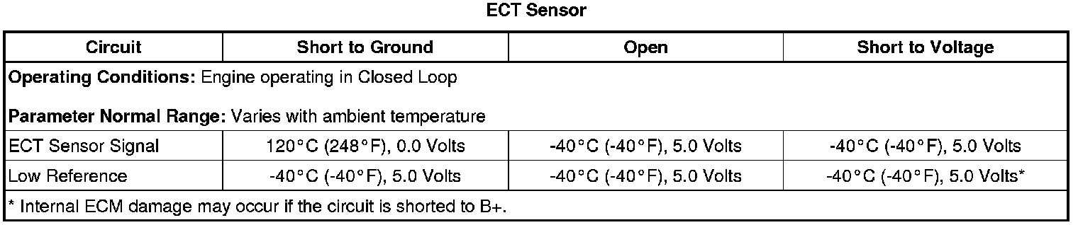 5. If all circuits test normal, test or replace the ECT sensor.