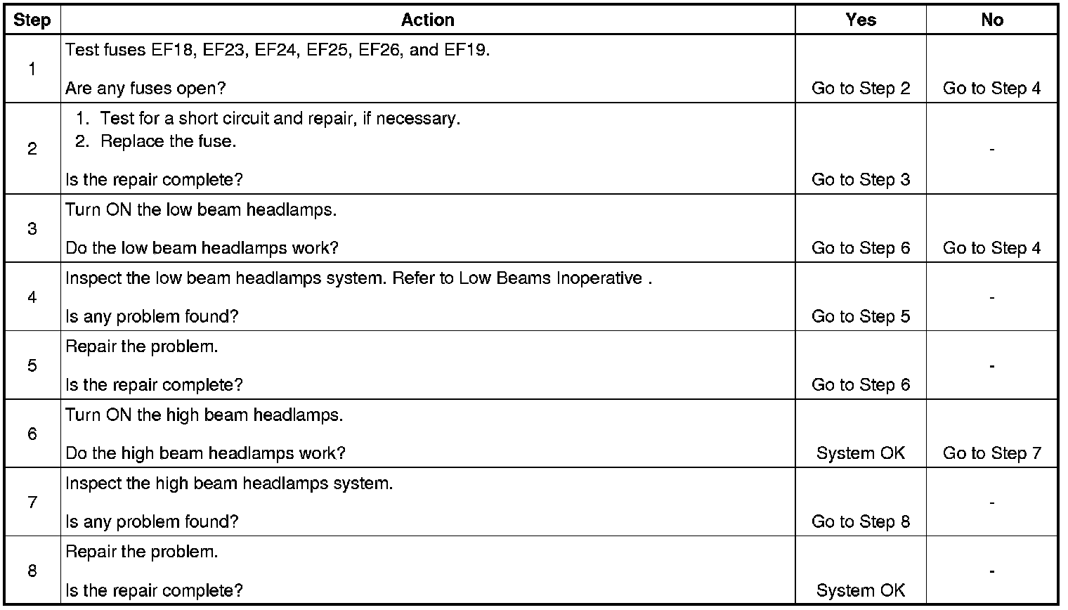 Low and High Beams Inoperative (Hatchback)