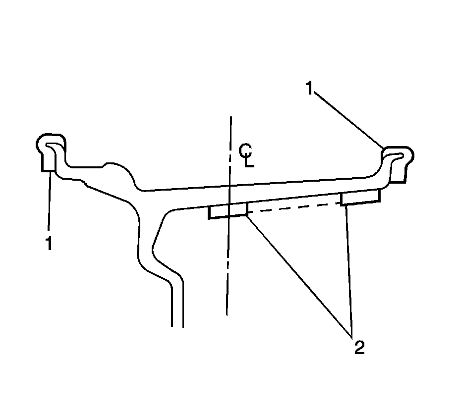 Balancing the assemblies with factory aluminum wheels requires the use of special nylon-coated, clip-on wheel weights (1). These weights are designed to fit over the thicker rim flange of the aluminum wheel. Install these weights with a plastic-tipped hammer.