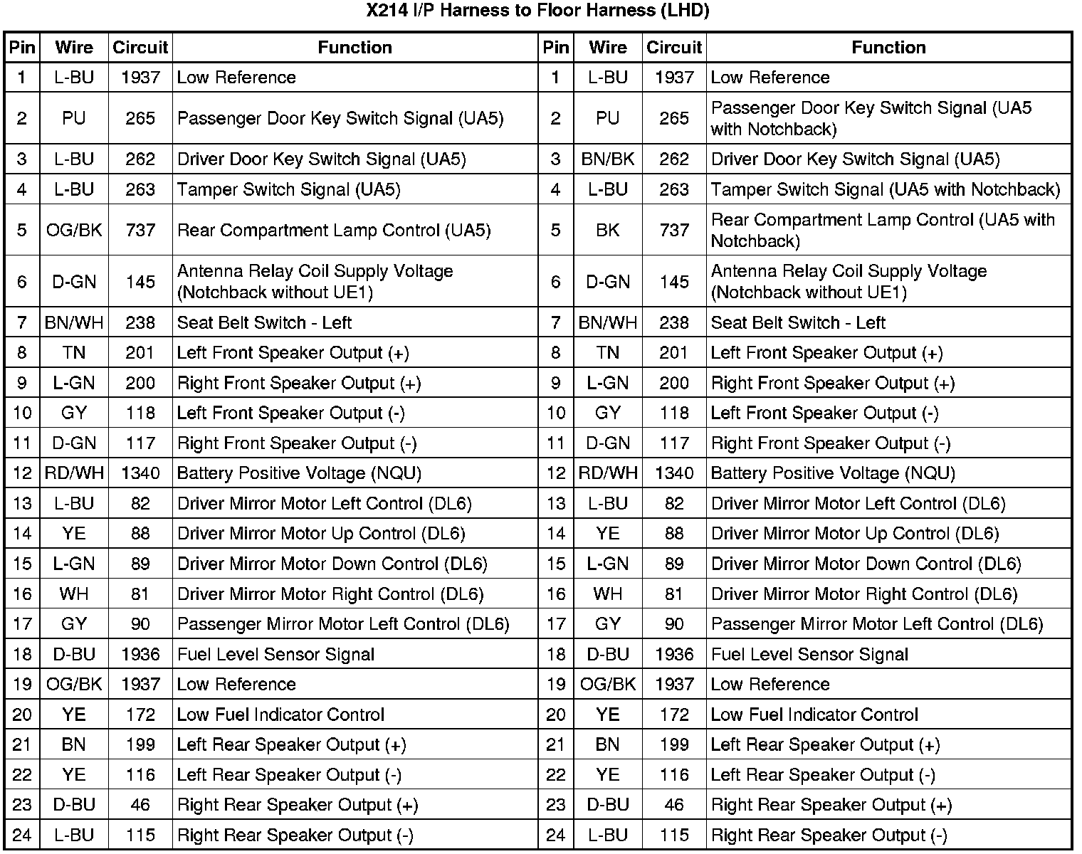 X214 I/P Harness to Floor Harness (LHD)