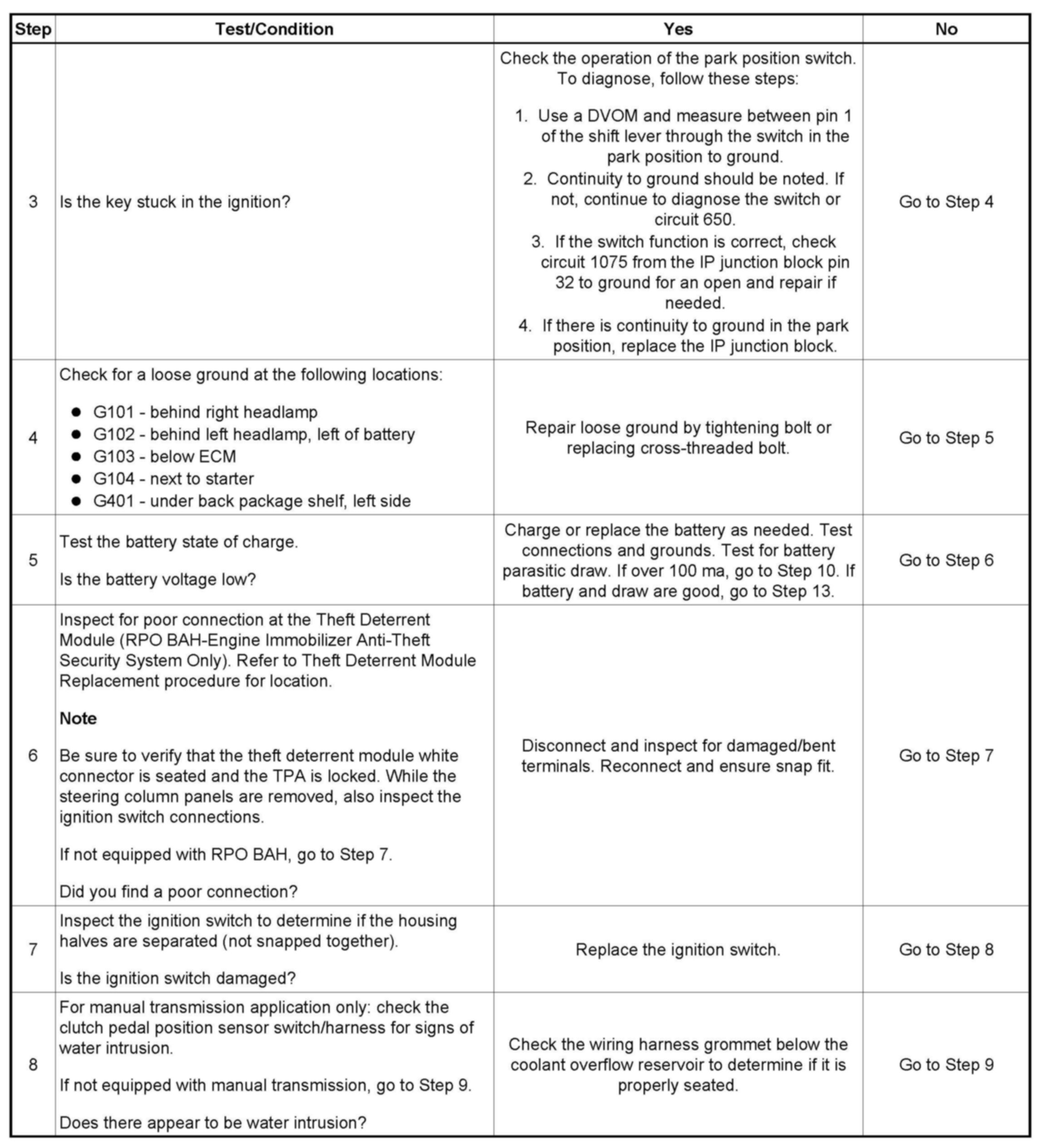 An intermittent no crank/no start concern may be caused by any one of the conditions described in this bulletin and it may be difficult to diagnose if it cannot be duplicated. This bulletin summarizes the most probable causes and provides direction for diagnostics.