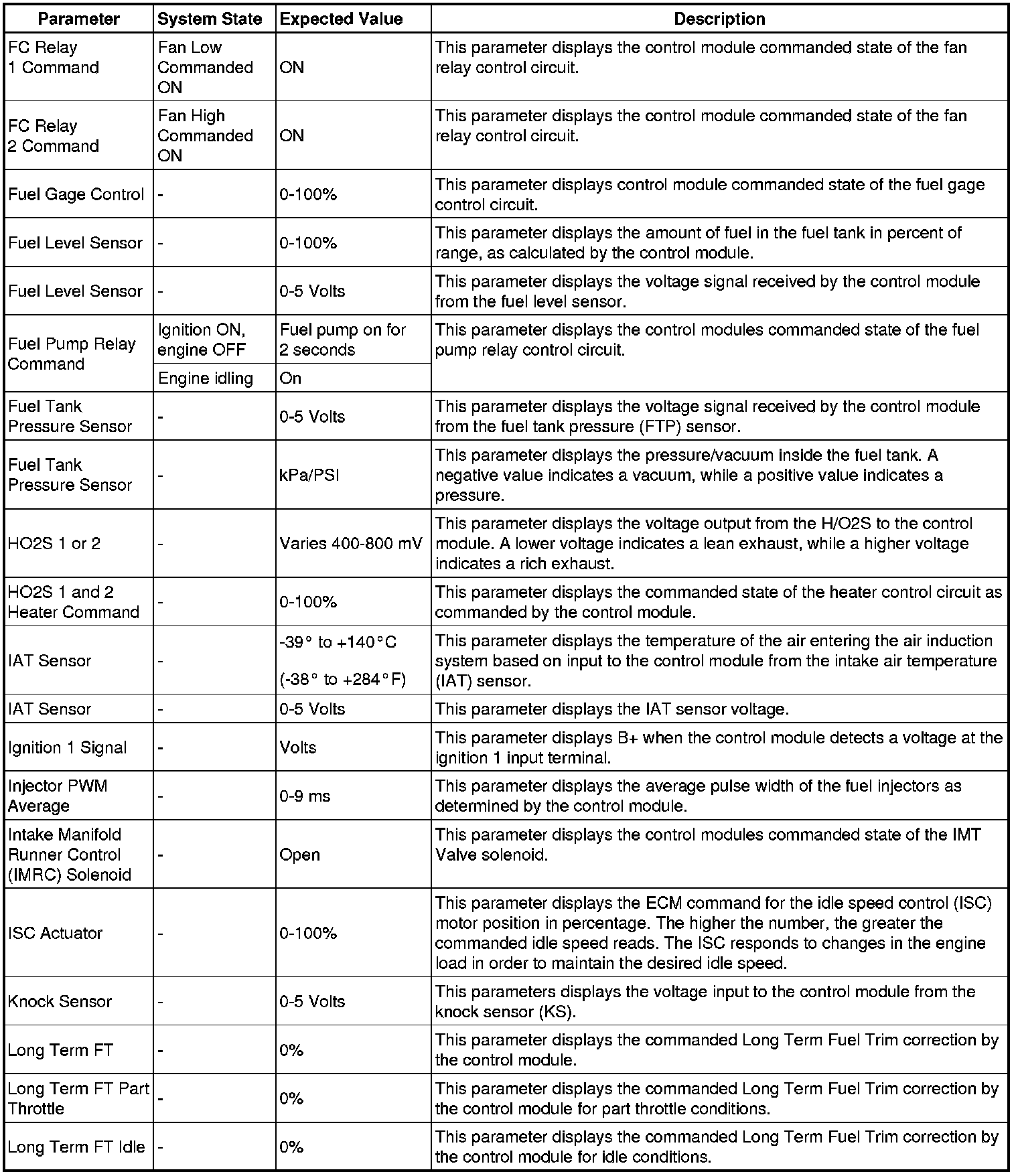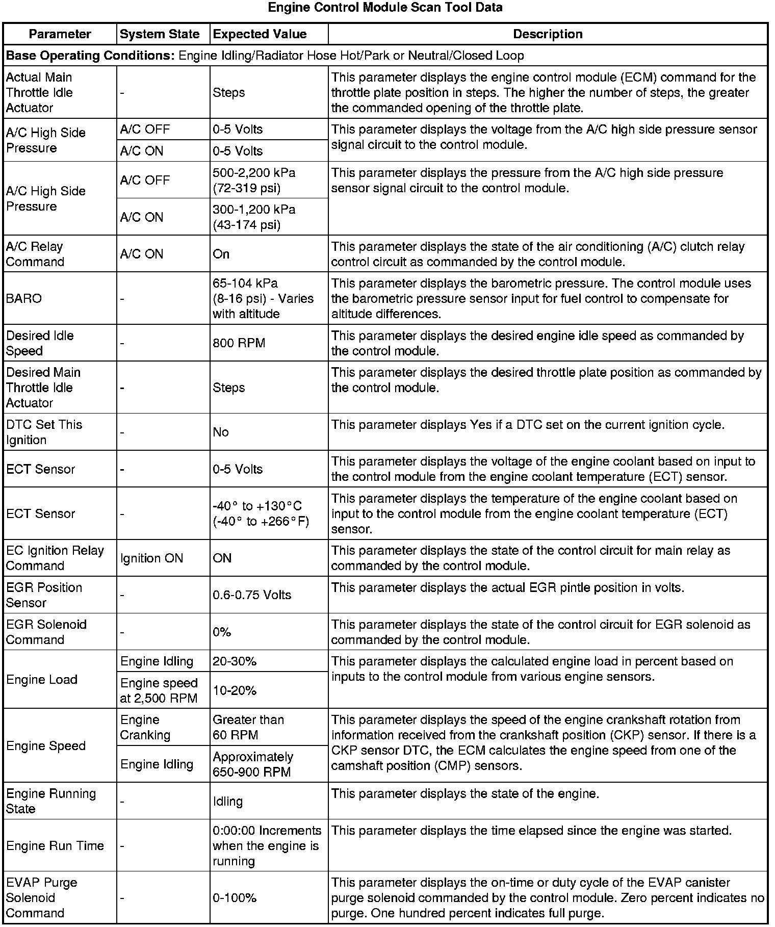 The scan tool values from a properly running engine may be used for comparison with the engine you are diagnosing. The Engine Scan Tool Data List represents values that would be seen on a normally running engine.