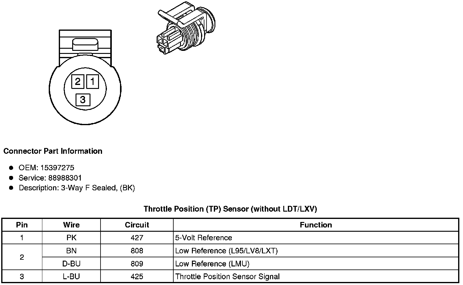 Throttle Position (TP) Sensor (without LDT/LXV)