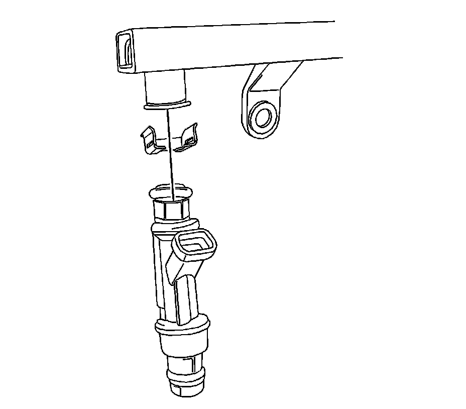 Note: If an injector becomes separated from the rail and remains in the cylinder head, replace the injector O-ring seals and the retaining clip.