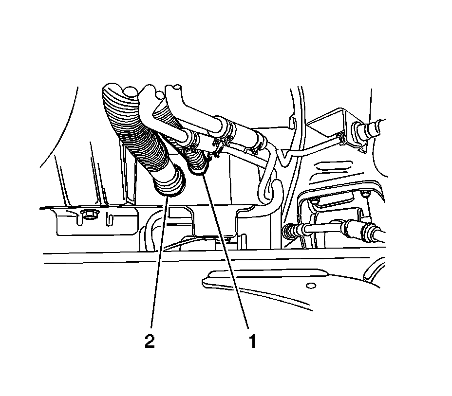 6. Disconnect the fuel tank filler tube (2) and vent tube (1).