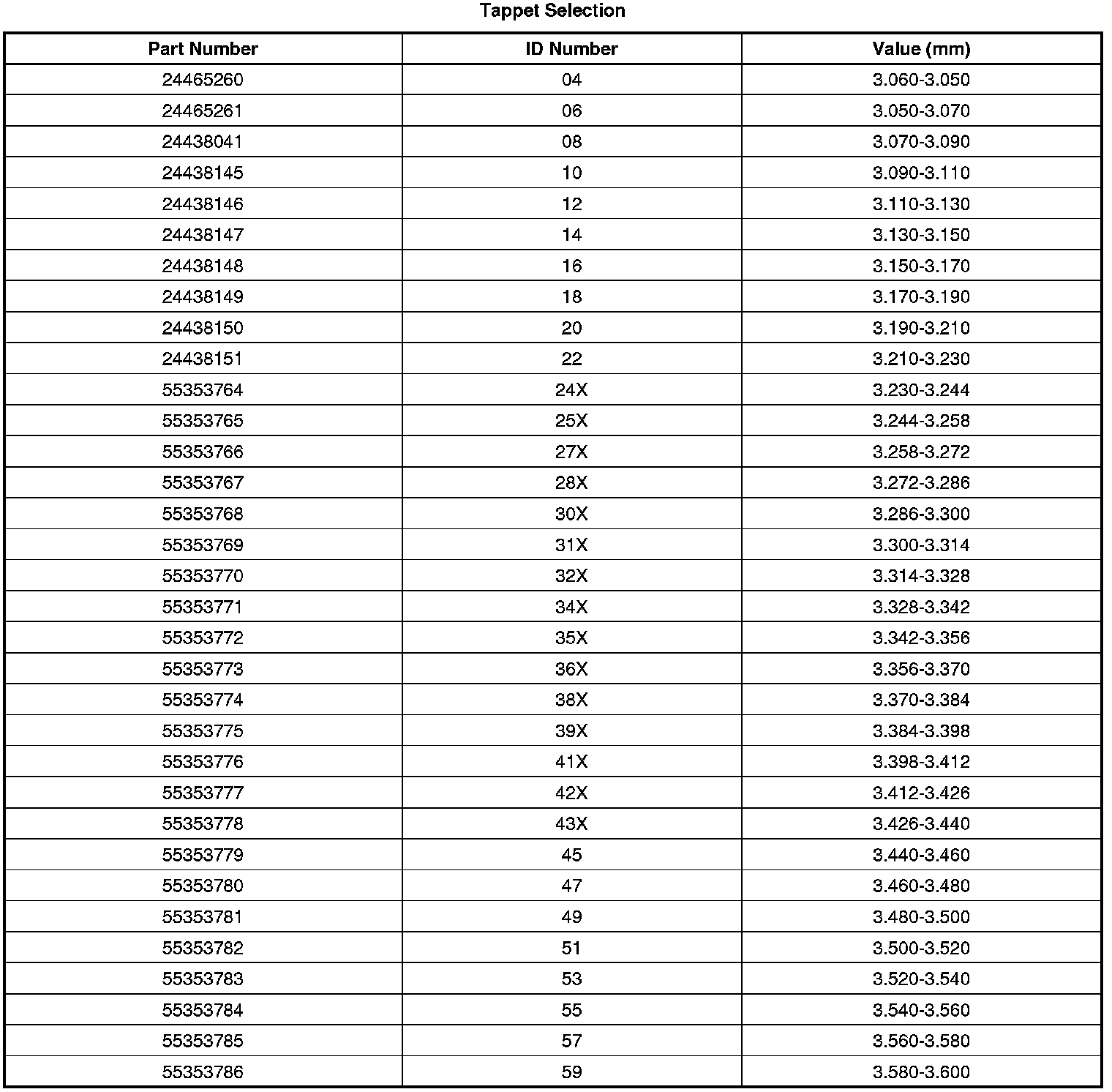 * 3.265 mm = 27X (ID number) = 55353766 (part number)