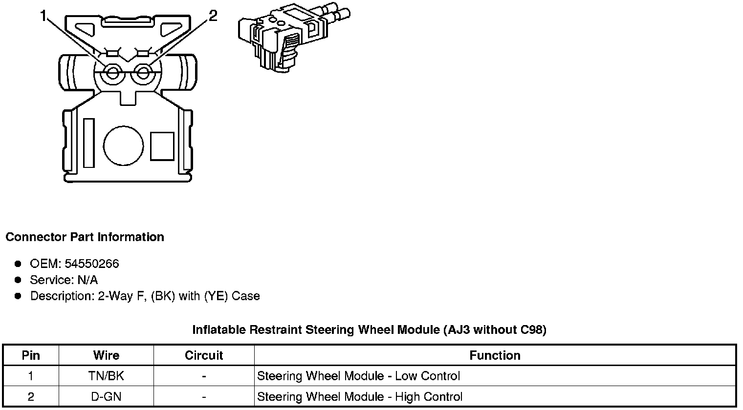Inflatable Restraint Steering Wheel Module (AJ3 without C98)