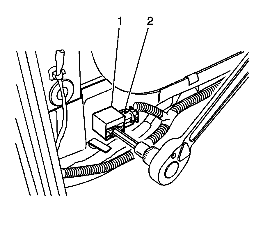 3. Disconnect the side air bag sensor connector (2).