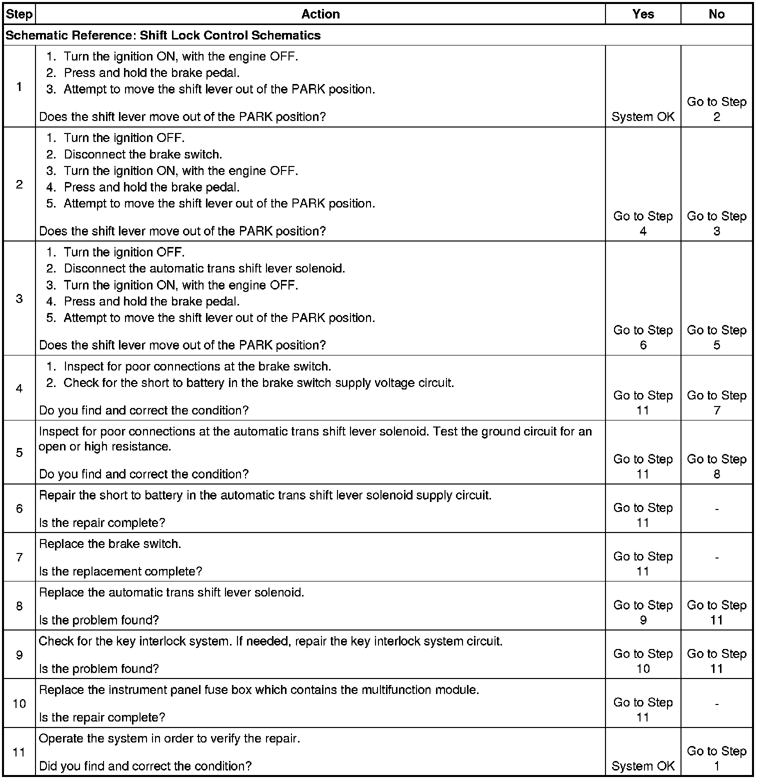Shift Lever Does Not Move with Brake Pedal Depressed