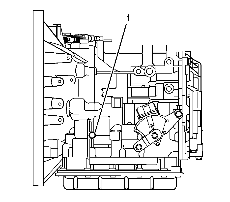 2. Install J 21867 and J-21867-50 to test the hole (1) for line pressure.