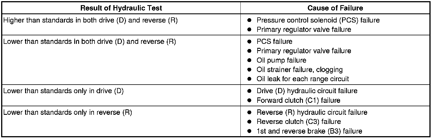 The hydraulic test can inspect the working condition inside the automatic transmission (A/T) by measuring line pressure in drive (D)/reverse (R) range and idle/stall condition.