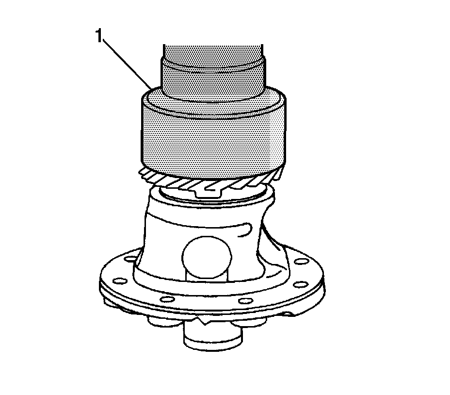 1. Install the speedometer drive gear onto the differential gear housing using KM-525 (1).