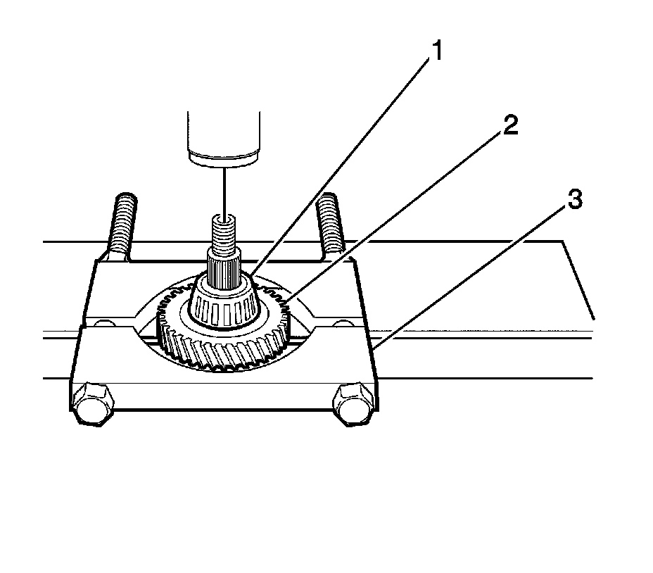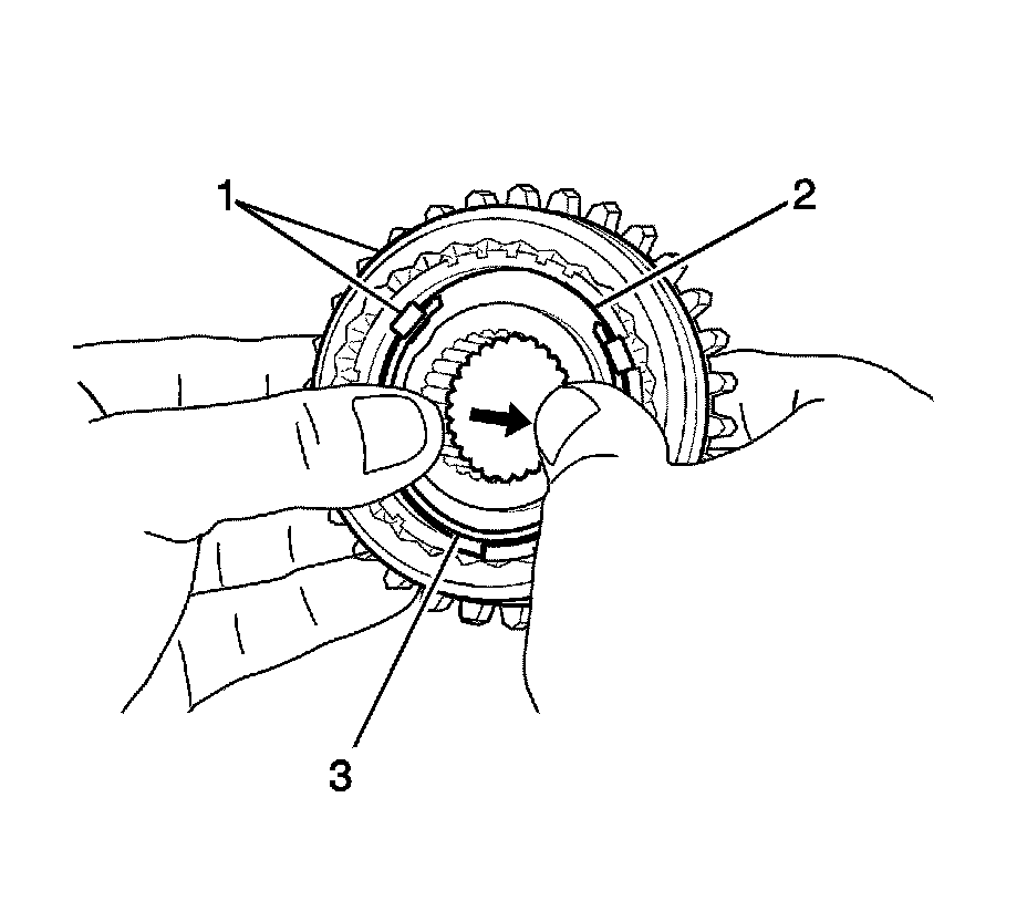 17. Push the 1st-2nd gear synchronizer hub from the hub assembly (2).