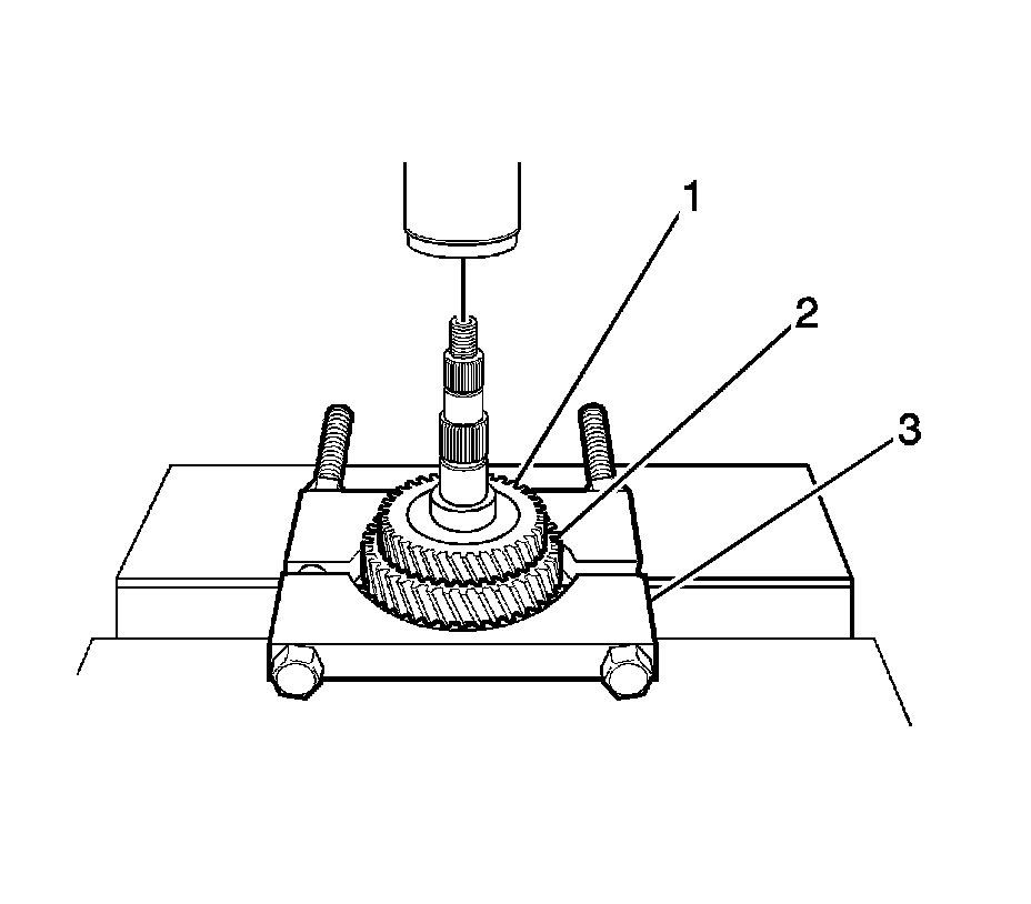 15. Remove the 1st gear/1st gear synchronizer ring (2).