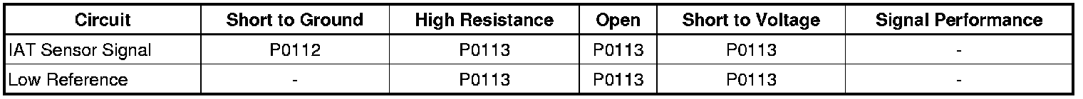 * Depending on the ambient temperature, an IAT sensor signal circuit or low reference circuit that is shorted to the MAF sensor signal circuit can cause a DTC P0113 to set. This condition causes a rapid fluctuation in the IAT Sensor parameter.