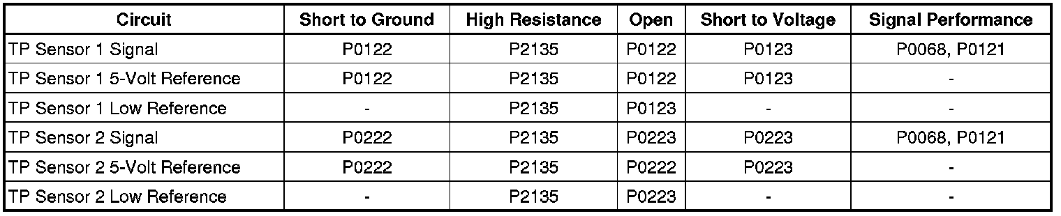 * DTC P0120, P0122, P0123, P0220, P0222, P0223, and P2135 are Type A DTCs.