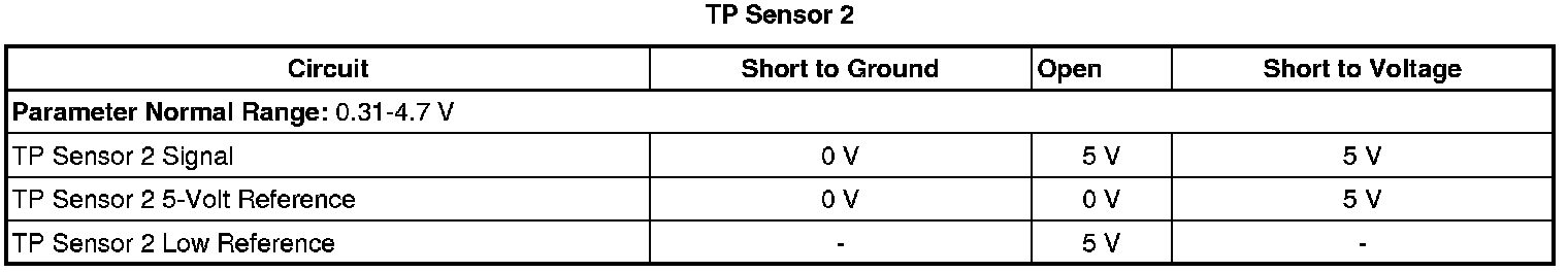 - Throttle Position (TP) Sensor 2 Circuit Low Voltage