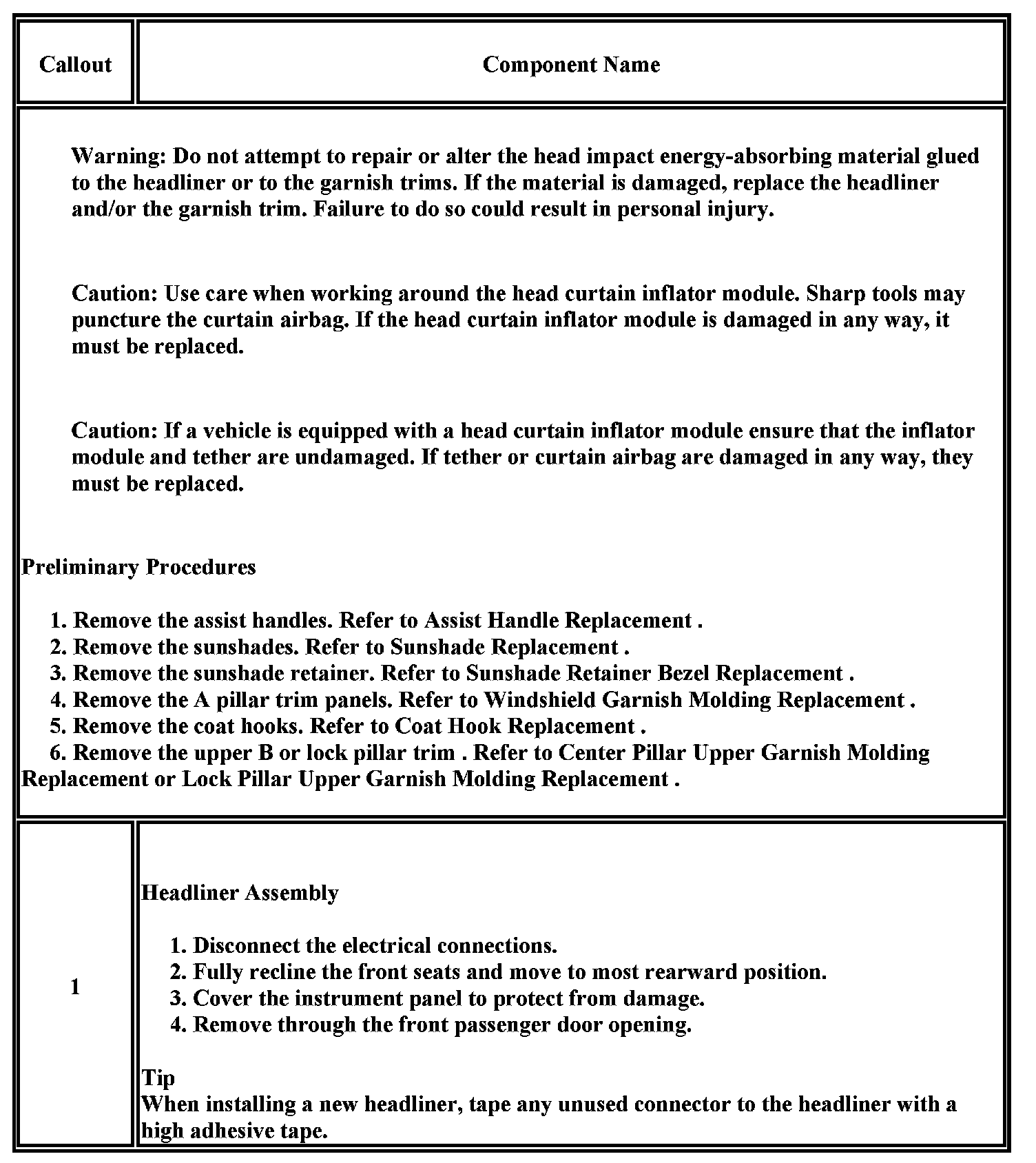 Headliner: Service and Repair