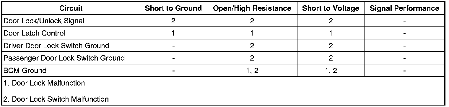 • If one or more doors do not LOCK or UNLOCK, refer to Door Lock Malfunction.