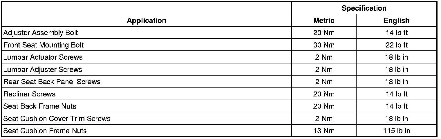 Seats: Specifications