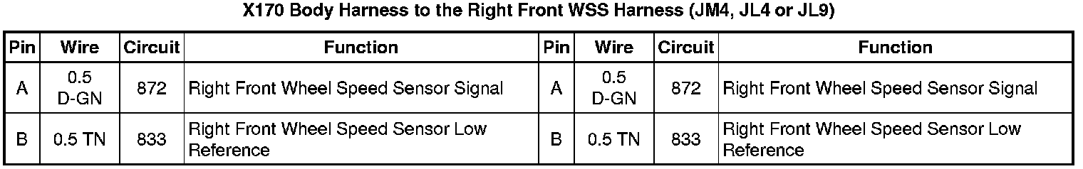 X170 Body Harness to the Right Front WSS Harness (JM4, JL4 or JL9)