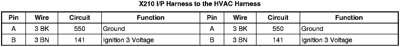 X210 I/P Harness to the HVAC Harness