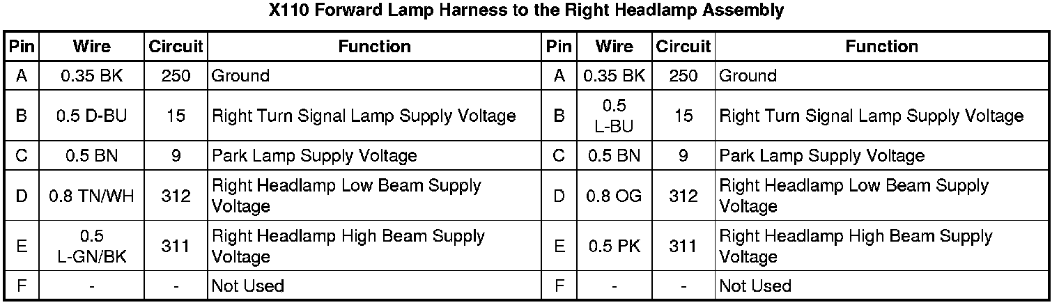 X110 Forward Lamp Harness to the Right Headlamp Assembly