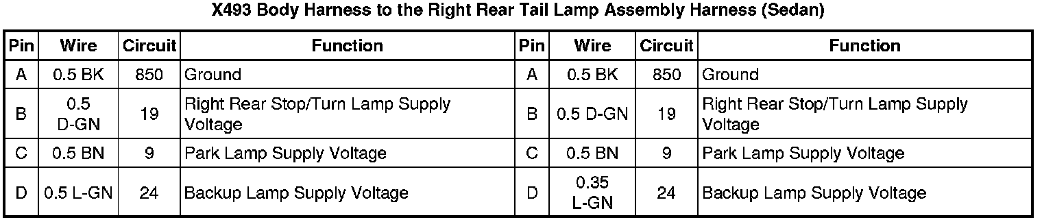 X493 Body Harness to the Right Rear Tail Lamp Assembly Harness (Sedan)