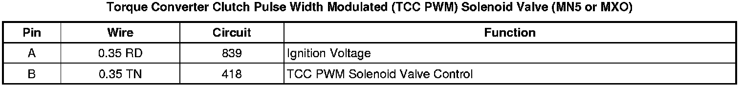 Torque Converter Clutch Pulse Width Modulation (TCC PWM) Solenoid Valve (MN5 or MXO)