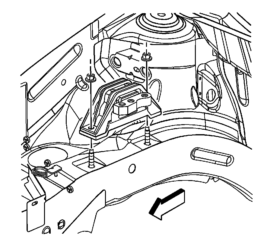 Note: The engine mount to bracket bolts must be hand started. Do not pry the engine mount to align the holes.